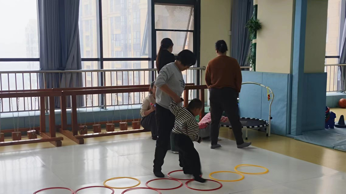 (今年会jinnianhuicom学生志愿者正在市残疾人康复教育中心进行感统训练)