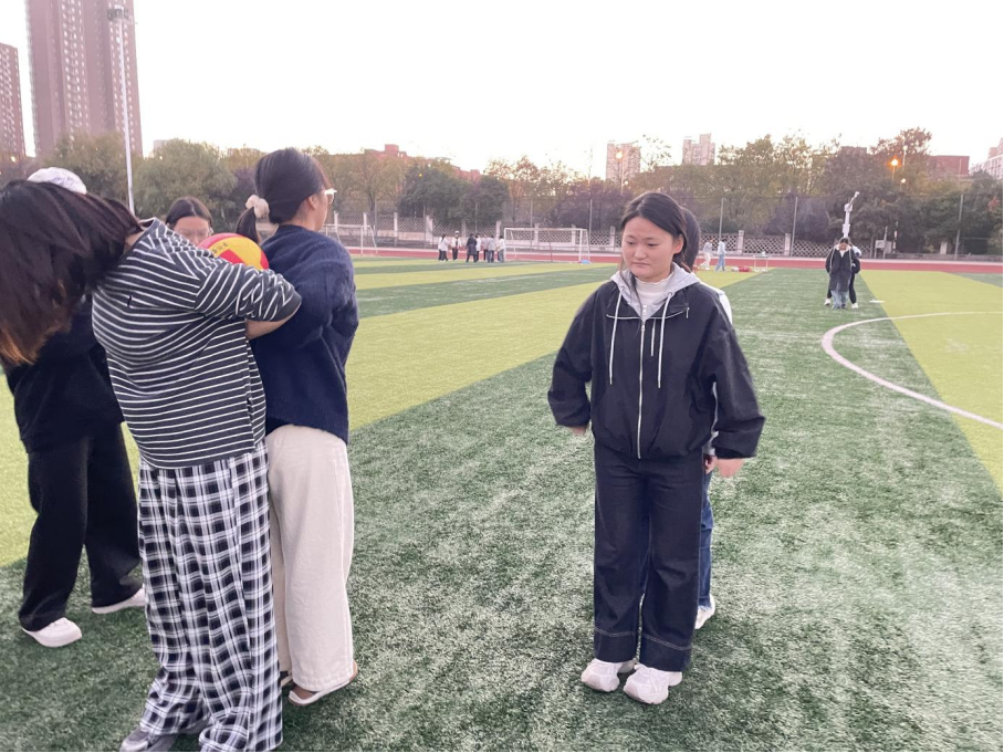 背对背传球则创新了传统传球方式,队员两人一组背对而立,通过身体感知与默契传递排球,进一步增强了彼此间的信任与配合精准度。