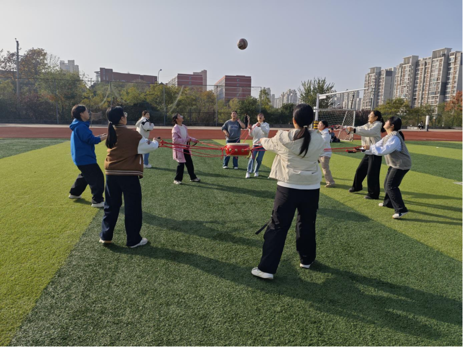 同心鼓项目要求全队成员各执一绳,通过眼神交流与即时沟通,共同控制鼓面移动以连续击球,极大提升了学生在高压情境下的沟通技巧与协作韧性。