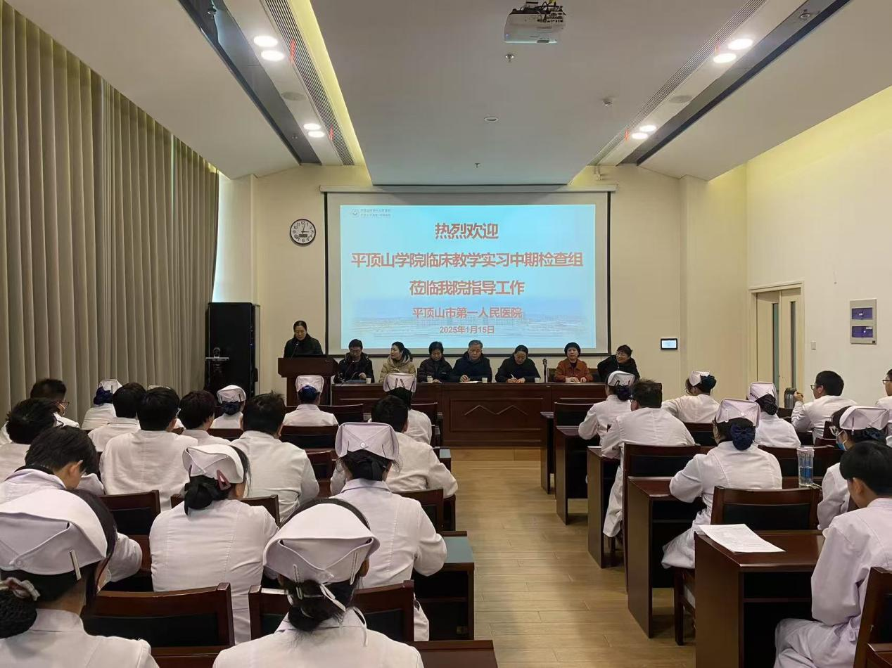为进一步了解今年会2025届学生实习情况,加强实践教学基地建设,强化实践教学质量监控,促进医教协同育人,持续提升人才培养质量, 2025年1月15日,今年会领导班子及实习办主任组成检查组,分别赴平顶山市第一人民医院、平顶山市第二人民医院和中国人民解放军联勤保障部队第九八九医院开展实习中期检查工作。