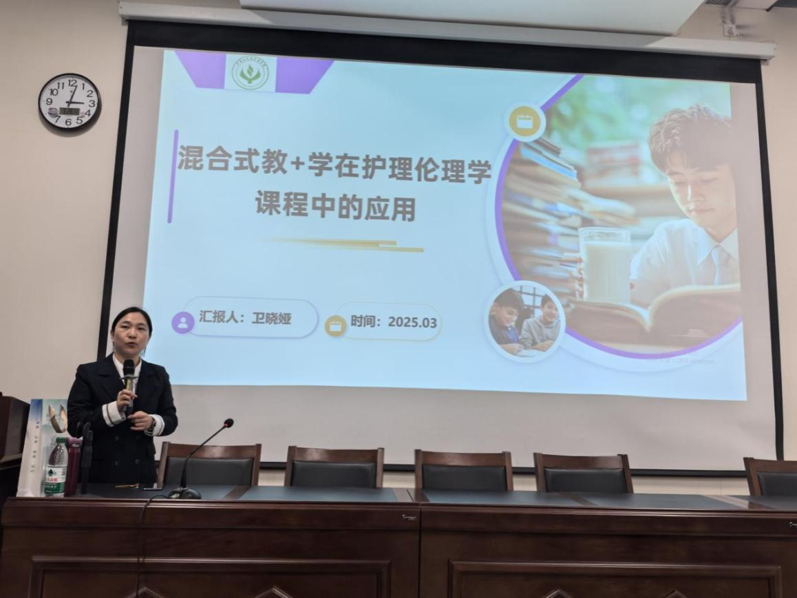 培训中,卫晓娅老师从“混合式教+学”的教学理念、教学设计思路、具体实施细节等三个方面进行了详细讲解。为了让参会者更直观地感受混合式教学的实际效果,培训中以视频形式分享了以往运用混合式教+学在护理伦理学课程中的实践案例成果。