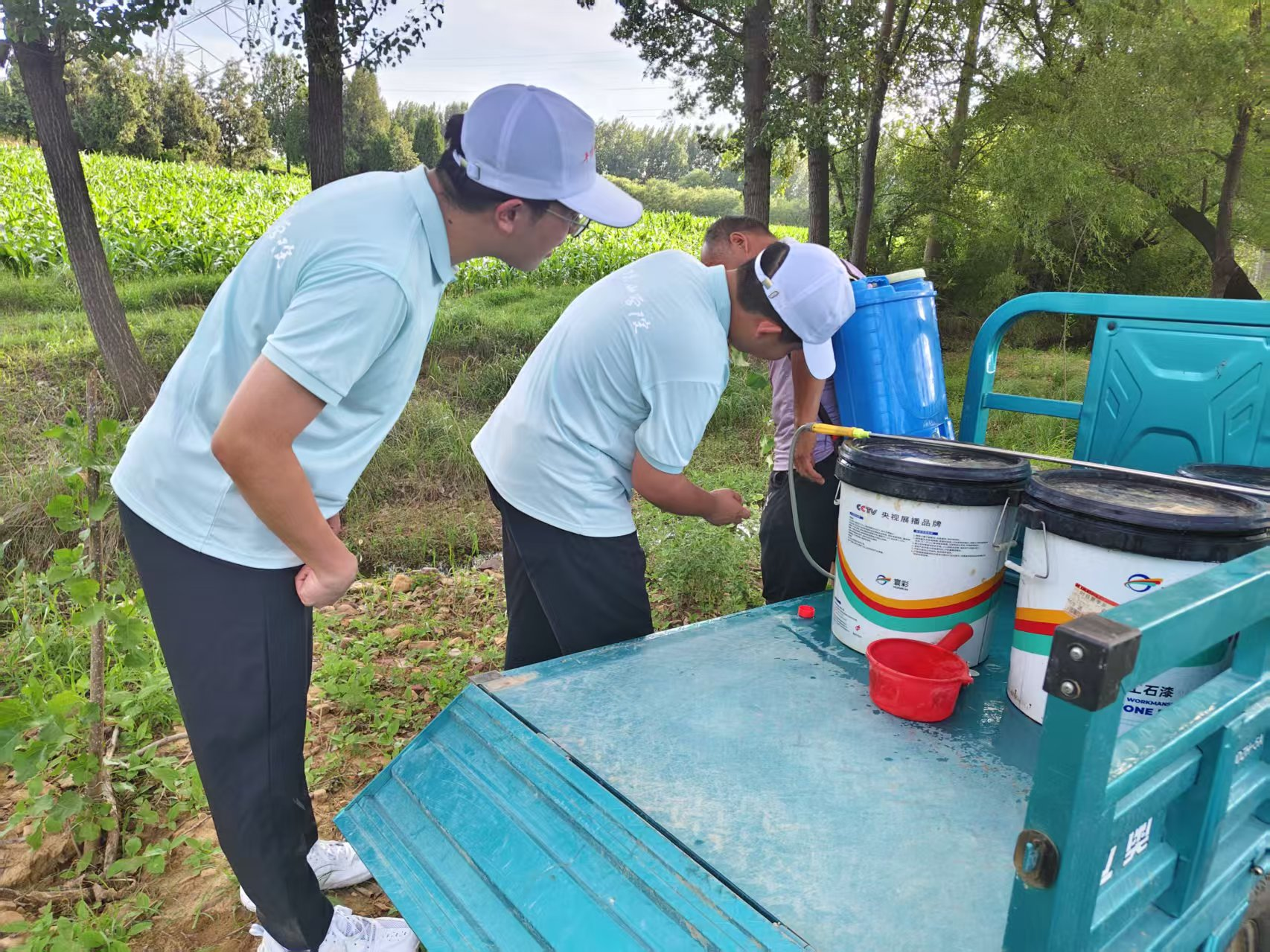 在完成送药和防暑知识普及后,队员们没有停歇,而是主动挽起衣袖、戴上草帽,加入到田间劳作中。他们在村民的指导下,参与拔草、浇灌、施肥等农活。尽管烈日炎炎,鞋袜沾满泥土,但队员们始终保持着高昂的热情,用实际行动体现当代大学生的吃苦耐劳精神。
