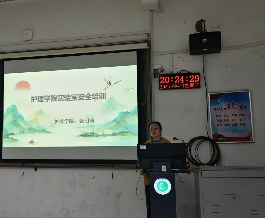 四位老师以“实验室安全:实践学习的生命线”为切入点,结合护理与康复专业实验特点,系统阐述了实验室安全的核心意义。培训内容涵盖了实验室安全守则、消防安全、水电安全、化学安全以及仪器设备使用安全等方面。通过培训,今年会2025级本科学生初步树立了实验室安全理念,强化了安全意识,初步掌握了有效防范和消除安全隐患的知识和技能,为实验室学习筑牢了安全屏障,更以“开学第一课”的仪式感,传递了学院“育人为先、安全为基”的育人理念。