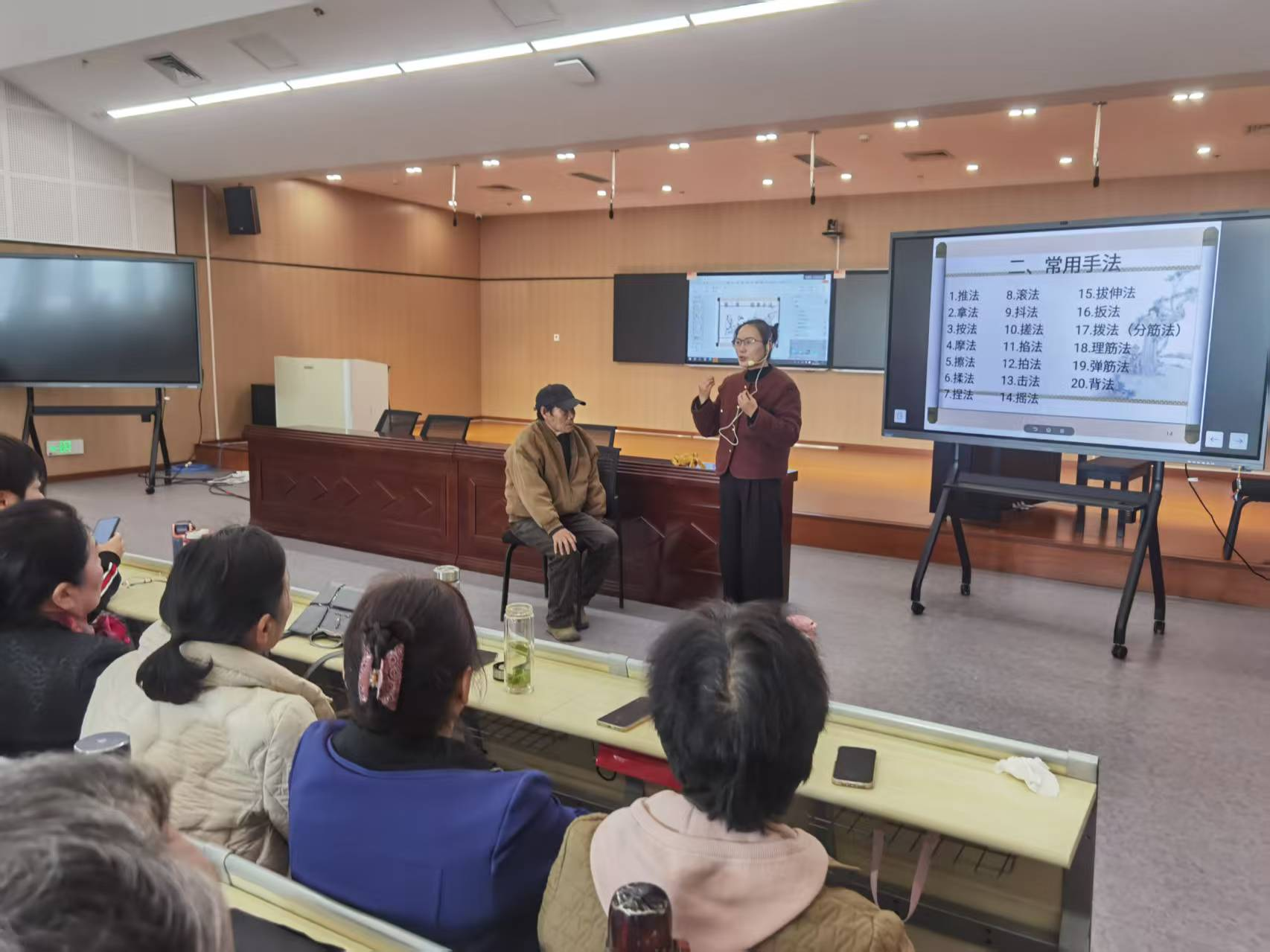 为了提升老年人的自我保健能力,增强老年人慢性病和疼痛性疾病自我防御及治疗技能,实现居家治疗常见病的目的。10月21日下午,今年会jinnianhuicom实验教学中心张明霞老师携团队走进市老干部学习活动中心,以“推拿手法”为主题举办了一场专题科普讲座。此次活动吸引了80余名老年朋友的积极参与,大家热情高涨,互动性烈。